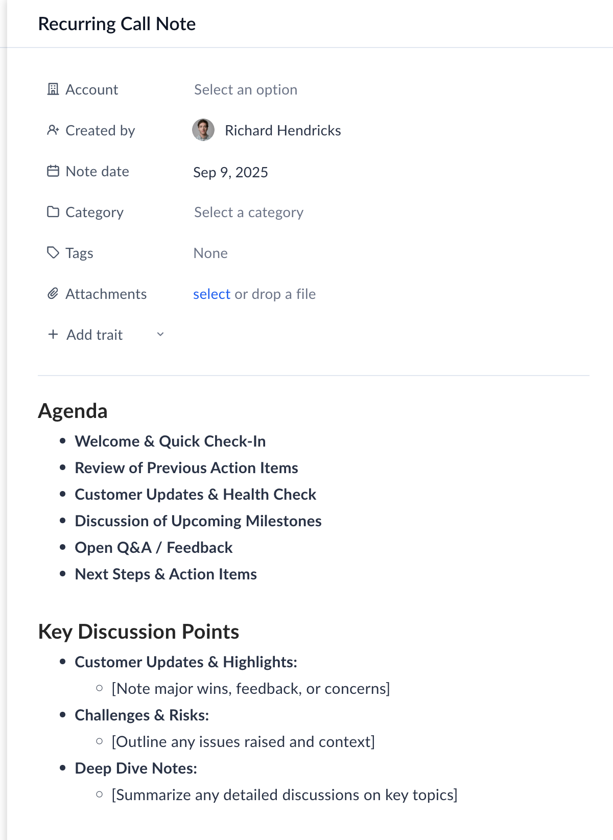 - Recurring Call Note Template